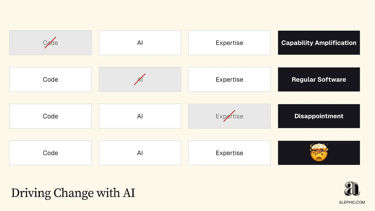 When you just have code + AI, you get … disappointment. It does some AI stuff, but it’s not always that helpful. Many folks are trying to find ways to solve that, and I’m sure many of them are, but that feels like the fundamental hurdle all this new software needs to clear.