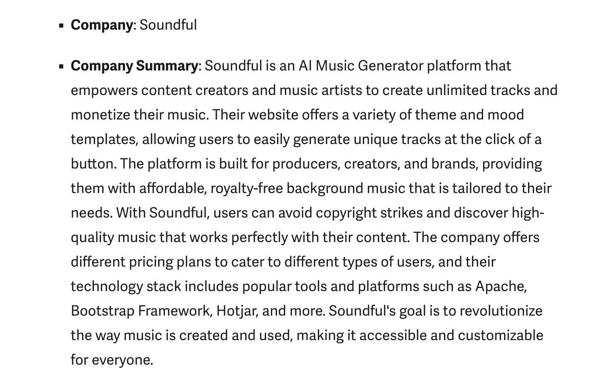 Just today, I met with the AI music company Soundful, and here’s a bit of what the briefing included: